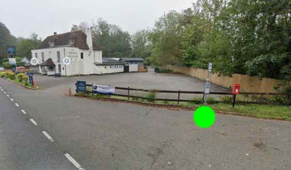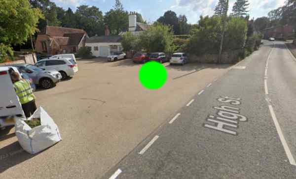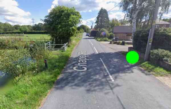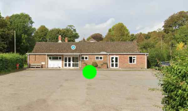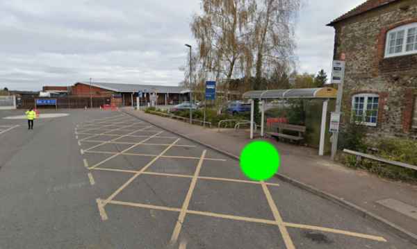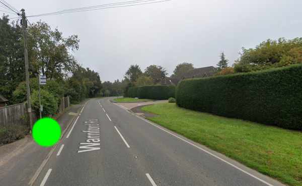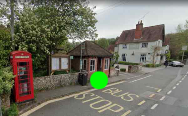 Some of our stops are not marked with a bus stop sign. This page gives details of all of our regular stops. For each stop, there is a street view showing the location of the stop marked with a green circle, a link to the Google Street View of the bus stop, a link to OpenStreetMap showing the exact location of the stop marked with a blue pin, and a what3words link to the exact location.