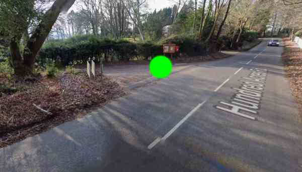 This stop is next to the postbox on Hundred Acres Road, at the junction with Hundred Acres private road.