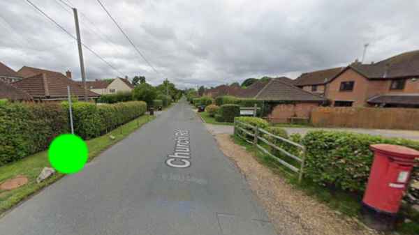 The bus stops on Church Road, opposite Rookesbury Hall. There is a pole with no sign attached marking the bus stop.
