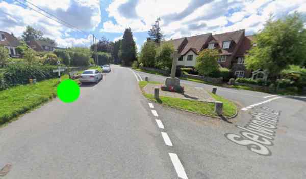 This stop is next to the bench opposite the war memorial at the junction where Webbs Green, High Street and Selworth Lane meet.